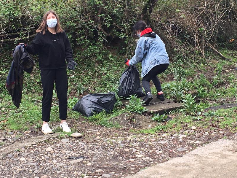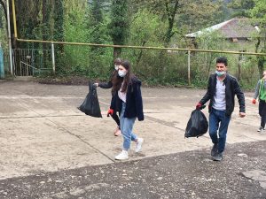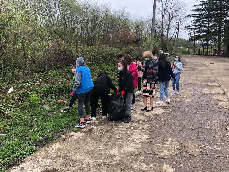Regarding the World Clean-Up Day, was held several cleaning actions within the project “Waste Free River For a Clean Black Sea” and the pupils of Gelati and Kutaisi Public School N 2 took part in it. Despite the desire of the majority of young people to be actively involved in the cleaning campaign, the number of participants was determined by the COVID19 restrictions and Groups of 5 people were formed in the schools and in total more than 40 students from both schools participated. The youths cleaned the areas around the schools. The action was held in compliance with all regulations and rules of COVID19.